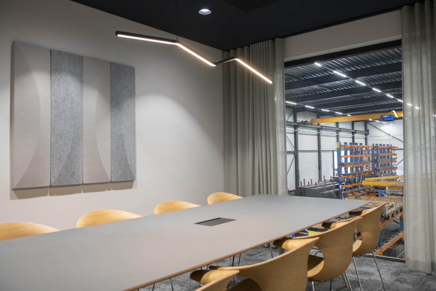 The design approach for this office in real estate & the technical industry was guided by the idea of transparency and flow. Natural tones and textures run consistently throughout the office area, creating a sense of continuity. Where the office offers warmth & comfort, inspiration and focus, the production hall reflects the same identity on a larger scale.